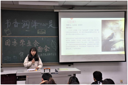 讀書分享環(huán)節(jié),團(tuán)委學(xué)生會(huì)各個(gè)部門干部分享了《浮生六記》、《活著》、《圍城》、《非暴力溝通》、《人生》等共十二本書籍,他們帶著深刻的感悟以及對(duì)書籍獨(dú)到的理解向大家分享書籍,使每個(gè)聽眾都受益匪淺,體會(huì)到書籍帶給人們的特殊感觀。