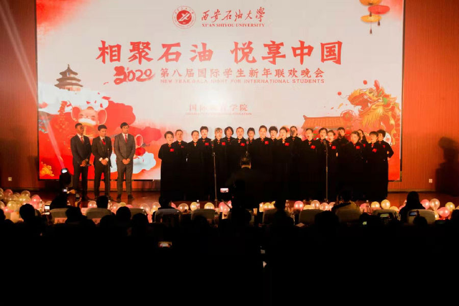 12月20日晚,“相聚石油·悅享中國(guó)”2020年留學(xué)生新年聯(lián)歡晚會(huì)在鄠邑校區(qū)圖書館弘石報(bào)告廳成功舉辦。鄠邑校區(qū)管理辦公室、學(xué)生工作處、校團(tuán)委等部門負(fù)責(zé)人受邀觀看晚會(huì),國(guó)際教育學(xué)院院長(zhǎng)董皓、副院長(zhǎng)秦璟、顏庭星及學(xué)院全體教職工、300余名留學(xué)生參加晚會(huì)。