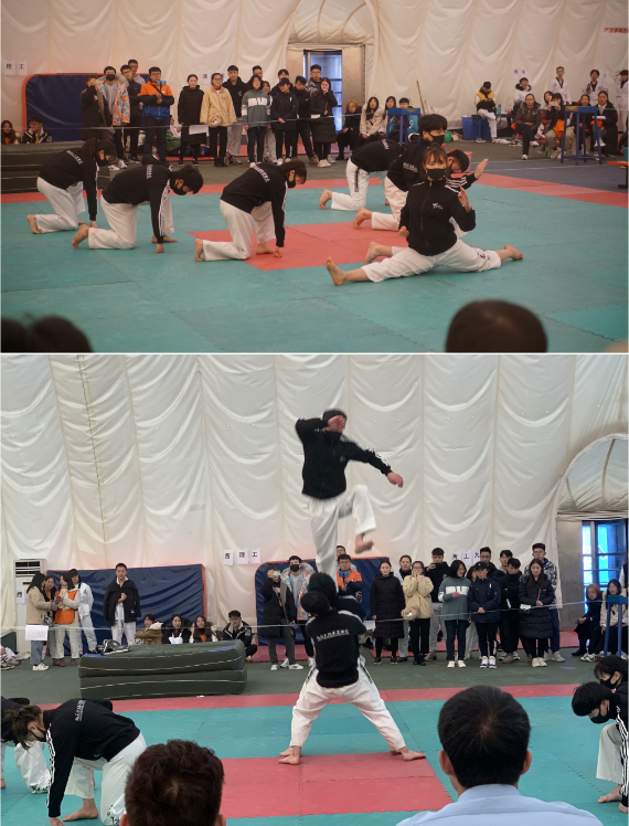 在為期一天的緊張比賽中,我校跆拳道協(xié)會(huì)表演團(tuán)首先以跆舞“龍拳”獲得本屆高校聯(lián)賽跆舞項(xiàng)目第一名。在隨后的高級(jí)別甲組段位賽中,張?jiān)脚c劉婭以靈活搶點(diǎn)、貼身近戰(zhàn)的特點(diǎn),分別取得該組冠軍和亞軍。