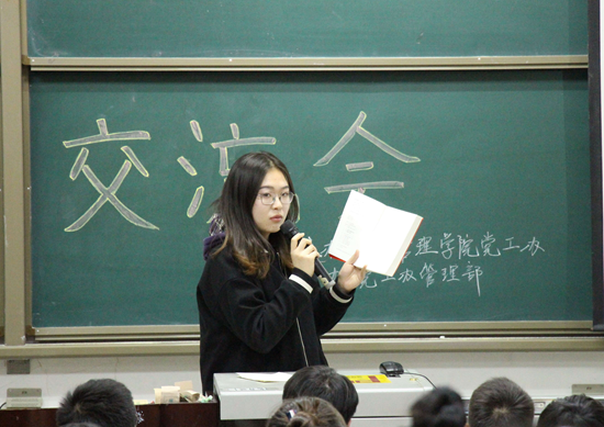 為貫徹落實習(xí)近平新時代中國特色社會主義思想,加強黨性修養(yǎng),同時激發(fā)同學(xué)們的入黨熱情,營造書香校園氛圍,堅定政治信仰,樹立正確的價值觀,12月4日晚,由經(jīng)濟管理學(xué)院黨委主辦,學(xué)生黨建工作辦公室承辦的“不忘初心、牢記使命”讀書分享交流會于鄠邑校區(qū)教學(xué)A區(qū)139教室舉行。經(jīng)濟管理學(xué)院黨工辦學(xué)生干部、學(xué)生黨員代表、入黨積極分子近200人參加。本次交流會由楊子奧、趙淼同志主持。
