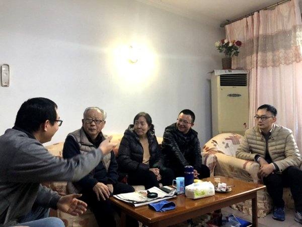 2019年11月14日,陽光和煦,纖云不染,為深入開展“不忘初心、牢記使命”主題教育的黨員志愿服務活動,新材料系教工黨支部全體黨員在支部書記王磊、系主任肖美霞以及許天旱教授的帶領下前往我校三位退休老師家中進行慰問送溫暖志愿服務活動。