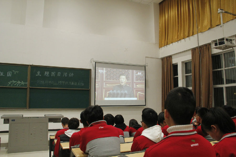 2019年11月12日晚,地球科學(xué)與工程學(xué)院團(tuán)委在鄠邑校區(qū)開展 “我和我的祖國”主題團(tuán)日活動(dòng),學(xué)院200余名團(tuán)員參加。