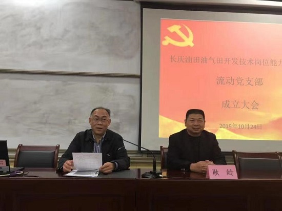 10月24日下午,長(zhǎng)慶油田公司油氣田開(kāi)發(fā)技術(shù)崗位能力培訓(xùn)班全體黨員在培訓(xùn)中心隆重舉行了流動(dòng)黨支部成立大會(huì)。繼續(xù)教育學(xué)院黨支部書記耿嶺、副院長(zhǎng)吳民生以及本期參訓(xùn)學(xué)員中的20名正式黨員、10名預(yù)備黨員參加了成立大會(huì),大會(huì)由繼續(xù)教育學(xué)院黨總支委員、副院長(zhǎng)吳民生主持。