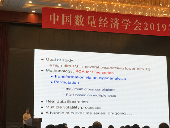 會議主旨報(bào)告先由英國倫敦經(jīng)濟(jì)與政治科學(xué)學(xué)院統(tǒng)計(jì)系姚琦偉教授進(jìn)行“Multiple Forecasting based on Time Series PCA”的學(xué)術(shù)報(bào)告,接著由新加坡管理大學(xué)經(jīng)濟(jì)學(xué)院蘇良軍教授進(jìn)行以“Uniform Inference in Linear Panel Data Models with Two-Dimensional Heterogeneity”為主題的報(bào)告。