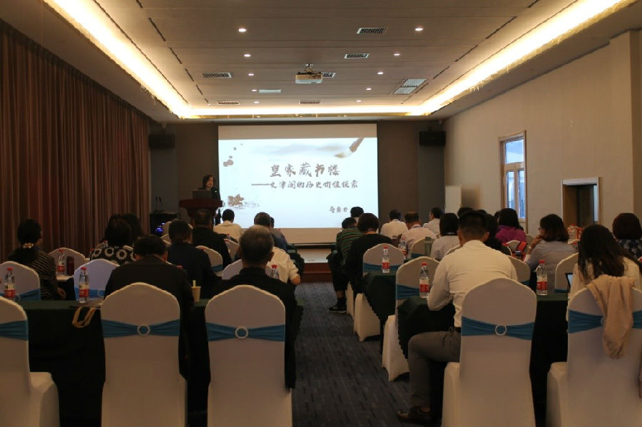 本次會(huì)議特別邀請(qǐng)承德避暑山莊博物館館長(zhǎng)蔣秀丹作了題為“皇家藏書樓——文津閣的歷史價(jià)值探索”的報(bào)告,報(bào)告中主要介紹了四庫(kù)全書七所藏書樓之一的文津閣的歷史情況和藏書保存情況以及文津閣藏書的歷史價(jià)值。