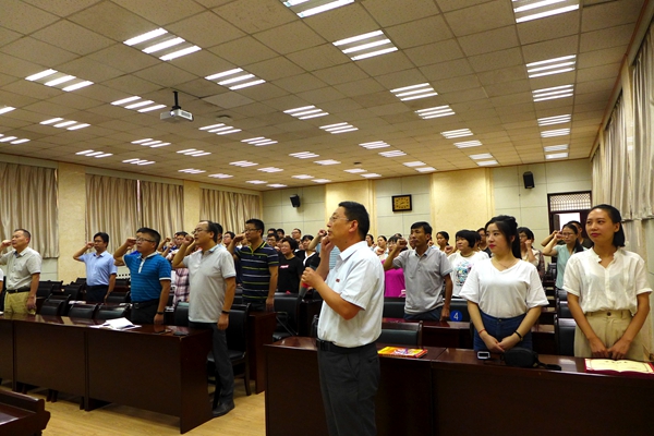 大會首先舉行了隆重的教師宣誓活動(dòng)。在校級教學(xué)名師周好斌教授的領(lǐng)誓下,全院教師面向國旗進(jìn)行了莊嚴(yán)宣誓。言簡意賅、鏗鏘有力的錚錚誓詞道出了教師職業(yè)的基本操守和標(biāo)準(zhǔn),大家滿懷深情的莊嚴(yán)宣誓表達(dá)了自己對教育事業(yè)的熱愛、忠誠和承諾。
