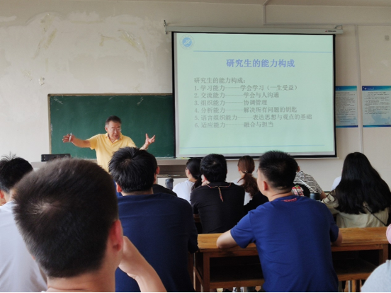 會(huì)議伊始,張家田教授對(duì)研究生新生的到來表示了歡迎,并以“淺談研究生的知識(shí)構(gòu)成與基本素質(zhì)”為主題,結(jié)合自身經(jīng)歷從研究生的知識(shí)構(gòu)成、能力構(gòu)成、基本素質(zhì)養(yǎng)成幾個(gè)方面進(jìn)行了深入的講解。對(duì)我院研究生的日常學(xué)習(xí)生活提出三點(diǎn)要求;一、研究生的能力應(yīng)該從學(xué)習(xí)、組織、語言、適應(yīng)力等幾方面全面發(fā)展,綜合提升自身素質(zhì)。二、研究生學(xué)習(xí)期間保持平衡心態(tài),積極主動(dòng)與老師交流學(xué)習(xí)生活狀態(tài)。三、做人為做事之本,做事為要,做人為先。