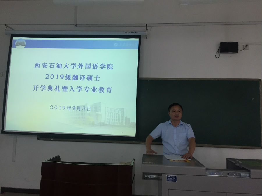 9月13日下午,外國(guó)語(yǔ)學(xué)院2019級(jí)翻譯碩士研究生開學(xué)典禮暨入學(xué)專業(yè)教育在鄠邑校區(qū)A201教室隆重舉行。外國(guó)語(yǔ)學(xué)院黨政領(lǐng)導(dǎo)班子全體成員、翻譯碩士研究生導(dǎo)師和2019級(jí)翻譯碩士研究生參加開學(xué)典禮。