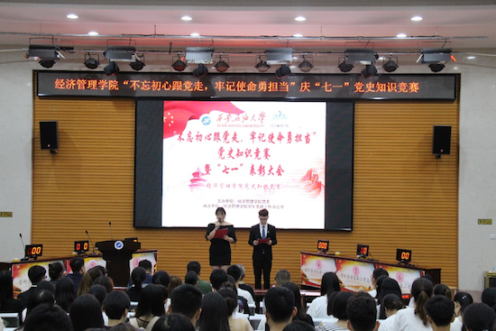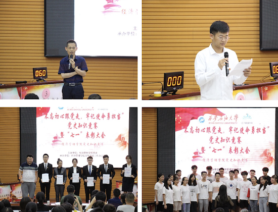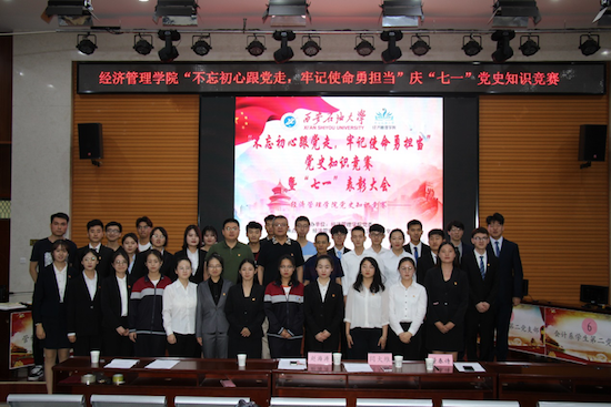 在“七一”黨的生日來(lái)臨之際,為進(jìn)一步激發(fā)青年學(xué)生熱愛(ài)祖國(guó)、永遠(yuǎn)跟黨走的民族情懷,培養(yǎng)學(xué)生社會(huì)主義核心價(jià)值觀,引導(dǎo)學(xué)生健康成長(zhǎng)成才,讓學(xué)生學(xué)黨史、知黨章,做合格黨員,6月25日下午,由經(jīng)濟(jì)管理學(xué)院黨委主辦,學(xué)生黨建工作辦公室承辦的“不忘初心跟黨走,牢記使命勇?lián)?dāng)”黨史知識(shí)競(jìng)賽暨“七一”表彰大會(huì)在鄠邑校區(qū)就業(yè)指導(dǎo)中心多功能廳舉行。經(jīng)濟(jì)管理學(xué)院黨委書(shū)記閆大維,計(jì)算機(jī)學(xué)院黨委副書(shū)記董春詩(shī),經(jīng)濟(jì)管理學(xué)院黨委副書(shū)記趙海濤,團(tuán)委書(shū)記劉冰,各年級(jí)輔導(dǎo)員以及學(xué)生黨員、入黨積極分子代表300余人參加。