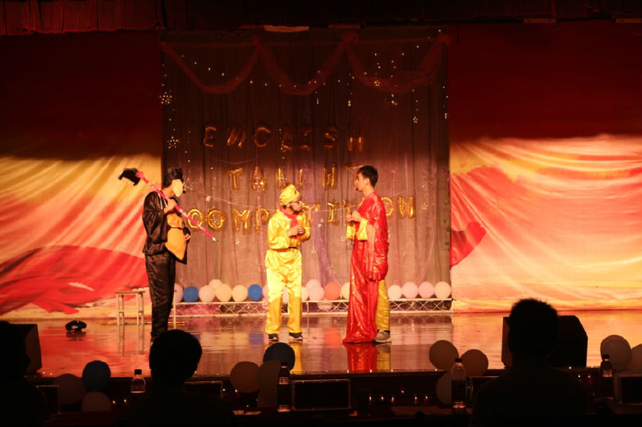 此次大賽主要包括歌曲、話劇、演講三項比賽內(nèi)容。開場歌曲《Season in the sun》首先將現(xiàn)場觀眾帶入到了比賽氛圍當(dāng)中,《Diamonds》《When I was your man》《Love yourself》三首歌曲讓觀眾們對親情和生命的意義有了更多感悟和思考。《My heart will go on》《You raise me up》分別將泰坦尼克號浪漫故事和“9·11事件”悲劇濃縮到了短短四分鐘的歌聲中。話劇《The true meaning of college life》幫助同學(xué)們理解什么是大學(xué)生活的真正意義,《西游記之白骨精與女兒國》和《白娘子傳奇》讓我們看到同學(xué)們用英語對經(jīng)典的再演繹。演講《Are you a leaf, branch or root》告訴我們?nèi)绾握{(diào)整自己的處事心態(tài),《The groundless brliefs》幫助我們探究自我盲從和迷信從何而生,《Undergraduate students dating is a good idea》讓我們感受到不一樣的大學(xué)生活。
