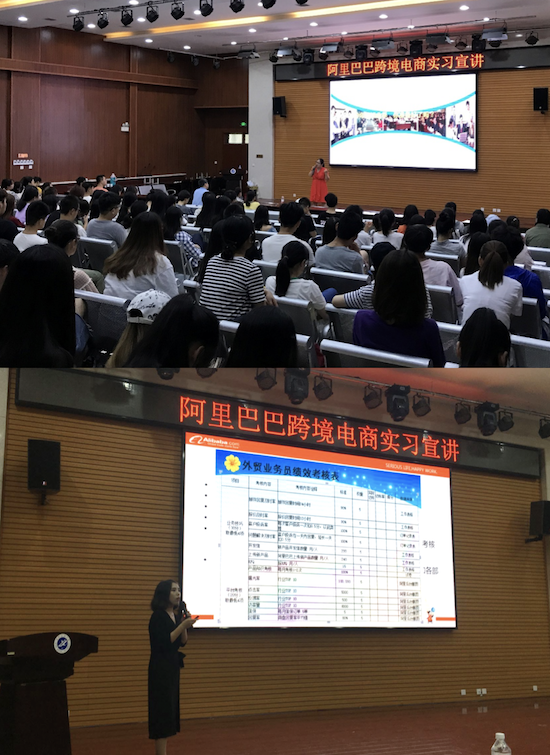 宣講開始,阿里巴巴國際站認證講師、橙樂營西北分公司總經(jīng)理陳霞女士首先介紹了跨境電商發(fā)展歷程以及陜西國際貿(mào)易的發(fā)展前景,并以自己的親身經(jīng)歷為例講述了從事跨境電商行業(yè)的歷程,使學生對跨境電商工作有了更多的感性認識。隨后,阿里巴巴跨境電商西安服務中心市場經(jīng)理姬媛女士詳細介紹了阿里巴巴跨境電商培訓及實習計劃。同學們也對本次宣講表現(xiàn)出了極大的興趣。