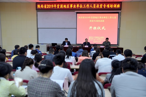 5月28日上午,陜西省2019年貧困地區(qū)事業(yè)單位工作人員扶貧專項培訓班在我校培訓中心順利舉辦。省人社廳事業(yè)處處長王彥文、繼續(xù)教育學院黨總支書記耿嶺出席開班儀式。西安市人才市場管委會辦公室、省人才交流服務中心姚亞鋒董事長主持開班式。