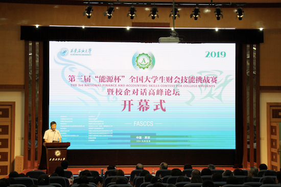 2019年5月25日上午,第三屆“能源杯”全國(guó)大學(xué)生財(cái)會(huì)技能挑戰(zhàn)賽開幕式在西安石油大學(xué)雁塔校區(qū)會(huì)議中心學(xué)術(shù)報(bào)告廳舉行。中國(guó)石油企業(yè)協(xié)會(huì)專職副會(huì)長(zhǎng)兼秘書長(zhǎng)高潮洪,中國(guó)高等教育學(xué)會(huì)高等財(cái)經(jīng)教育分會(huì)副理事長(zhǎng)兼秘書長(zhǎng)張國(guó)才,中國(guó)商業(yè)會(huì)計(jì)學(xué)會(huì)副會(huì)長(zhǎng)、會(huì)計(jì)學(xué)專業(yè)教學(xué)指導(dǎo)分委員會(huì)委員、北京工商大學(xué)教授楊有紅,陜西省注冊(cè)稅務(wù)師協(xié)會(huì)副秘書長(zhǎng)任玉華,西安財(cái)經(jīng)大學(xué)校長(zhǎng)方明,西安石油大學(xué)副校長(zhǎng)陳軍斌、副校長(zhǎng)楊戰(zhàn)社等出席開幕式。特邀嘉賓、媒體記者及參賽師生300余人參加開幕式。西安石油大學(xué)楊戰(zhàn)社副校長(zhǎng)主持開幕式。