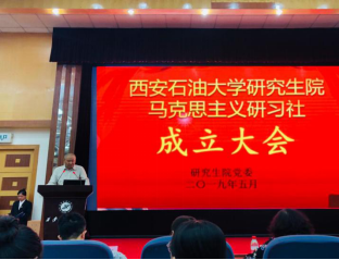 在中華人民共和國成立70周年、紀念五四運動100周年之際,各大高校都掀起學(xué)習(xí)馬克思主義思想的熱潮。西安石油大學(xué)研究生院也不負時代重任,借馬克思主義研習(xí)社吹響邁向新時代的號角,踐行社會主義核心價值觀,堅定擔(dān)當民族復(fù)興大任的理想信念,勇?lián)鷼v史使命。