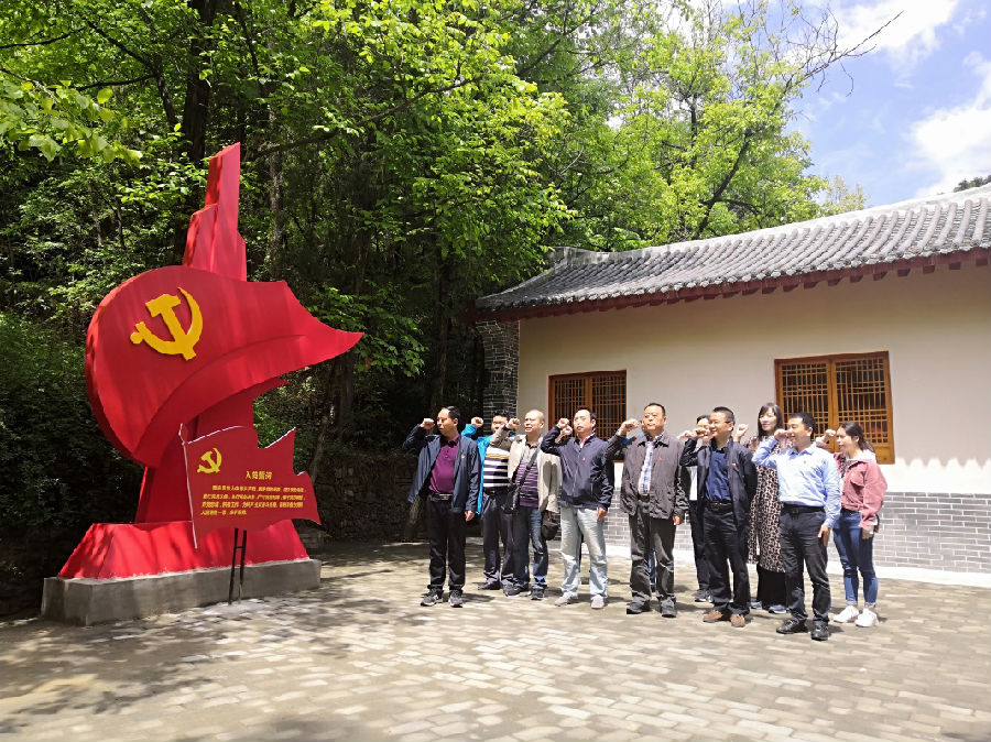 參觀學習第一站是位于北寬坪鎮(zhèn)五峰山下唐渠邊的商洛縣委縣政府舊址紀念館。在這里,同志們懷著崇敬的心情學習了北寬坪鎮(zhèn)深厚的紅色歷史,了解了歷史上與小鎮(zhèn)有關的著名紅色人物的先進事跡,尤其是李先念等老一輩革命先烈在小鎮(zhèn)的戰(zhàn)斗、工作、生活事跡,以及中原突圍、豫鄂陜邊區(qū)黨委擴大會、商洛民主政府成立等重大革命歷史事件。真實的影像記錄還原了那個年代艱苦卓絕的革命歷程,同志們都深受教育和鼓舞。學習第二站是商洛縣委縣政府舊址。在這里,全體黨員同志重溫入黨誓詞,面對黨旗許下莊嚴承諾。