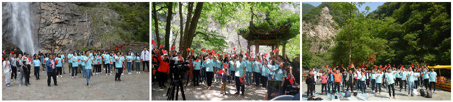 崇山峻嶺,飛瀑入潭,峰巒疊嶂、溝谷連綿。當(dāng)天上午,人文學(xué)院部分領(lǐng)導(dǎo)、教師、學(xué)生黨員和入黨積極分子來到風(fēng)景優(yōu)美的太平國(guó)家森林公園,與景區(qū)的工作人員、游客一起,以飽滿的熱情投入到本次活動(dòng)中。在景區(qū)內(nèi)石船子、彩虹瀑布等景點(diǎn),《我和我的祖國(guó)》、《歌唱祖國(guó)》兩首歌曲在同學(xué)們的演繹下,嘹亮的歌聲回蕩在山林綠水間,激揚(yáng)的旋律、鏗鏘的唱詞吸引周圍游客紛紛駐足。在現(xiàn)場(chǎng)越來越熱烈的氣氛中,大家情緒高漲,跟著音樂哼唱、紛紛揮舞著小紅旗,五星紅旗交相輝映,匯成一片紅色海洋,令人激情澎湃。