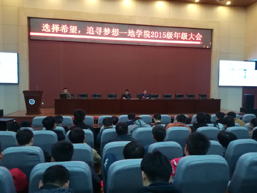 2019年3月6日,地球科學與工程學院在鄠邑校區(qū)弘石報告廳召開2015級年級大會,會議由2015級學生輔導員邱嶺老師主持,學院副院長宋立軍教授、黨委副書記孫會珠老師出席,2015級全體學生參加。