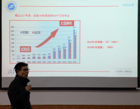 時保宏主任長期從事專業(yè)認(rèn)證(評估)相關(guān)工作,經(jīng)驗豐富。在推進(jìn)會中,時主任詳細(xì)講解了專業(yè)認(rèn)證(評估)工作的國內(nèi)外現(xiàn)狀、理念、改革進(jìn)程。強調(diào)以學(xué)生為中心(Students-Centered,CS)、結(jié)果/產(chǎn)出導(dǎo)向(Outcome-Based Education,OBE)、持續(xù)改進(jìn)(Continuous-Quality Improvement,CQI)三大原則,強調(diào)了在專業(yè)認(rèn)證(評估)理念下,發(fā)揮任課教師積極主動性的重要作用。