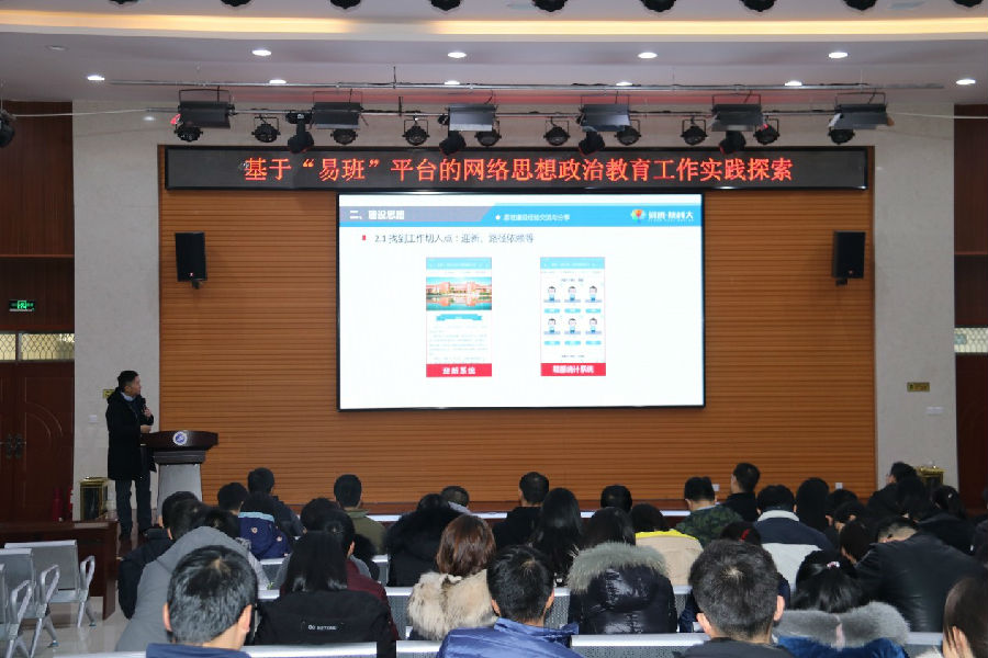 陶興旺的報(bào)告由網(wǎng)絡(luò)思政教育的時(shí)代背景、網(wǎng)絡(luò)陣地建設(shè)和具體做法、學(xué)工干部觀念轉(zhuǎn)變和能力提升等三個(gè)部分組成。從網(wǎng)絡(luò)思政教育的時(shí)代背景、易班與網(wǎng)絡(luò)思政教育的關(guān)系等方面重點(diǎn)介紹了易班建設(shè)的必要性和緊迫性;從尋找工作切入點(diǎn)、遵循網(wǎng)絡(luò)規(guī)律、強(qiáng)化互聯(lián)網(wǎng)思維等方面講述了在網(wǎng)絡(luò)環(huán)境中開(kāi)展學(xué)生工作的思路和原則;從網(wǎng)絡(luò)文化工作室培育、智慧學(xué)工系統(tǒng)建設(shè)思路、學(xué)生團(tuán)隊(duì)管理等三個(gè)方面介紹了陜西科技大學(xué)在網(wǎng)絡(luò)思政教育方面的探索。最后,陶興旺與我校學(xué)工干部進(jìn)行了互動(dòng)交流。
