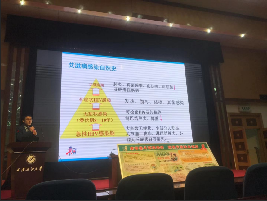 講座通過大量實(shí)際數(shù)據(jù)向同學(xué)們展現(xiàn)了全國(guó)大學(xué)生感染艾滋病人數(shù)上升的局勢(shì),強(qiáng)調(diào)了高校開展艾滋病防治宣傳教育的重要性和必要性等,同時(shí)結(jié)合臨床病例與相關(guān)視頻,全面講解了艾滋病的感染自然史、基本癥狀、治療方法以及針對(duì)此疾病我國(guó)目前開展的預(yù)防檢測(cè)方式及免費(fèi)治療政策,并指出糾正了蚊蟲叮咬、日常生活正常接觸會(huì)被傳染艾滋病的誤區(qū),使學(xué)生們更深入地了解了什么是艾滋病,艾滋病的傳播渠道,艾滋病的廣泛性以及艾滋病的預(yù)防等重要的知識(shí),并引導(dǎo)同學(xué)們科學(xué)、理性的認(rèn)識(shí)和對(duì)待艾滋病及感染人群。