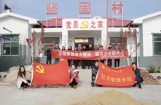 為認(rèn)真貫徹落實(shí)習(xí)近平總書記對(duì)弘揚(yáng)愛國(guó)奮斗精神作出的一系列重要指示和西石大黨組〔2018〕77號(hào)文件精神,按照學(xué)院具體工作部署,11月13日,經(jīng)濟(jì)管理學(xué)院“弘揚(yáng)愛國(guó)奮斗精神、建功立業(yè)新時(shí)代”主題黨日活動(dòng)在學(xué)校對(duì)口幫扶的永壽縣永平鎮(zhèn)堅(jiān)固村開展。經(jīng)濟(jì)管理學(xué)院黨委副書記趙海濤、學(xué)院全體學(xué)工干部、學(xué)生黨員代表近20人參加。