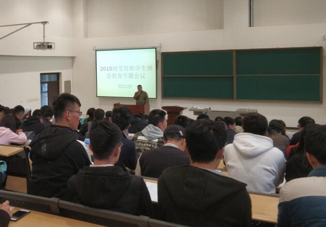 2018年11月5日下午,地球科學(xué)與工程學(xué)院召開2015級學(xué)生感恩教育主題大會。會議由輔導(dǎo)員邱嶺老師主持,2015級全體受資助學(xué)生參加會議。