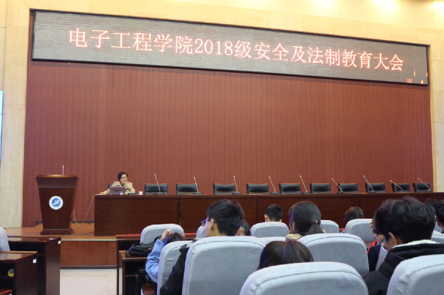 11月1日中午,電子工程學(xué)院在弘石報告廳舉辦了2018級安全教育大會暨法制教育講座,會議由院學(xué)生管理辦公室主任畢軼慧主持。本次講座邀請到了校保衛(wèi)處張永華副處長擔(dān)任主講嘉賓,院黨委副書記黃建禮出席了本次會議,學(xué)院2018級輔導(dǎo)員及2018級全體學(xué)生共同參加了本次會議。