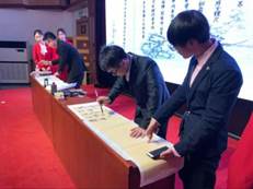 比賽現場,研究生社團“星原詩社”及“翰墨書社”也帶了精彩節(jié)目進行分享。星原詩社副社長康凱等演繹了詩朗誦“厲害了我的國”,激昂振奮;翰墨書社李睿哲等現場揮毫潑墨,伴著朗誦,一幅幅書法作品讓我們領略了“聽風落筆書畫卷,聞歌踏行彩墨宜,潤澤拂柳漾碧波,書會揮毫展藝活”的精妙。