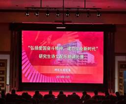 此次比賽共有來自7個培養(yǎng)院系的 12組選手,參賽作品從深情滿懷的《相信未來》到壯志激昂的《我的祖國》;從意境悠遠的《詩意中國》到立意深遠的《以夢為馬》;《春天里的中國》感受著祖國的希望,《我們的中國夢》又描繪著祖國發(fā)展的輝煌。各位選手們通過深情朗誦演繹,真切表達了新時代研究生對愛國精神、奮斗精神、社會主義核心價值觀的理解,用精彩的表演闡釋了自己心中的中國夢,表達了自身堅守理想與夢想,在有限的時光中奮斗拼搏,不辜負美好年華,不忘初心的決心。整場朗誦激情飽滿,鏗鏘有力,引起了臺下老師和學生的陣陣掌聲。