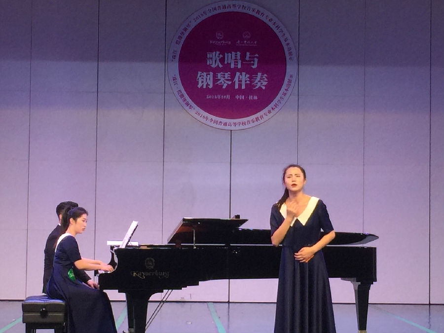 10月22日—26日由教育部主辦的全國(guó)普通高等學(xué)校音樂(lè)教育專業(yè)大學(xué)生基本功展示活動(dòng)在廣西師范大學(xué)成功舉辦。來(lái)自全國(guó)60所高校180名參賽選手參加了微課展示、樂(lè)器演奏、自彈自唱、歌唱與伴奏、合唱指揮等項(xiàng)目展示。經(jīng)過(guò)幾天的激烈角逐,最終我校音樂(lè)系的魚紫薇同學(xué)獲得個(gè)人全能三等獎(jiǎng),微課展示單項(xiàng)獎(jiǎng)。此項(xiàng)基本功展示活動(dòng)每?jī)赡暌淮?,是教育部?duì)高校音樂(lè)教育專業(yè)辦學(xué)成果的檢驗(yàn)。