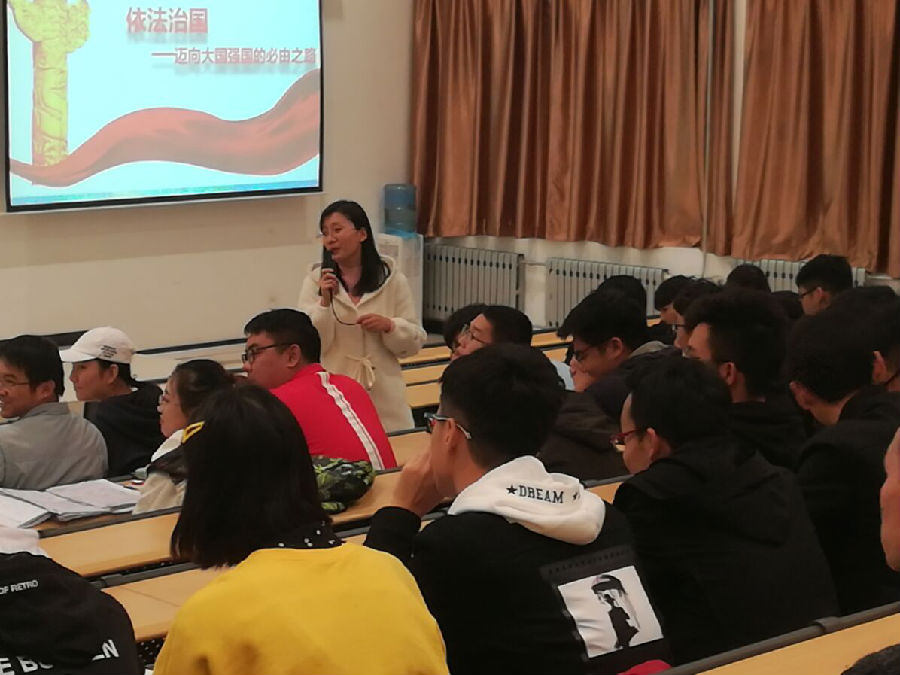 首先,張老師通過講述了一些違法違紀(jì)反面案例,引出依法治國這一概念。緊接張老師從依法治國目標(biāo)的提出和確立、全面推進(jìn)依法治國、堅(jiān)持走中國特色社會(huì)主義法治道路、加強(qiáng)憲法實(shí)施,落實(shí)依憲治國等四個(gè)方面進(jìn)行了講解。張老師希望學(xué)生黨員以及入黨積極分子通過學(xué)習(xí)法律知識(shí)、掌握法律方法、參與法律實(shí)踐、養(yǎng)成守法習(xí)慣等途徑培養(yǎng)自己的法治思維,做知法、懂法、守法的合格大學(xué)生,發(fā)揮應(yīng)有的先鋒模范作用。