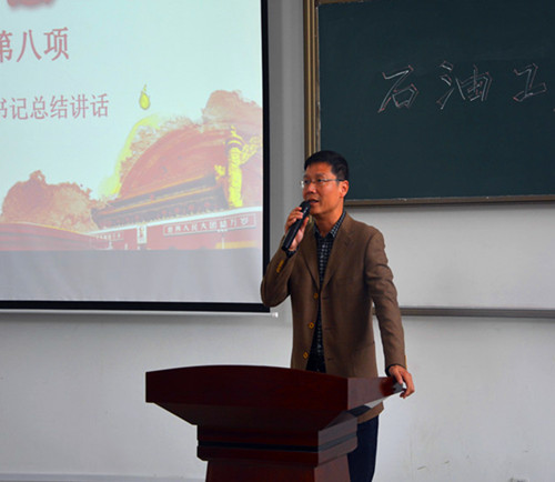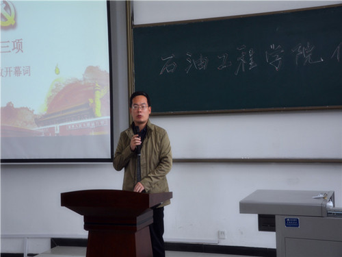為深入學(xué)習(xí)貫徹習(xí)近平新時代中國特色社會主義思想和黨的十九大精神,落實全國高校思想政治工作會議精神,進(jìn)一步推進(jìn)“兩學(xué)一做”學(xué)習(xí)教育常態(tài)化制度化,響應(yīng)學(xué)校要求,推動我院學(xué)生黨支部建設(shè),提高學(xué)生黨支部組織生活的質(zhì)量和效果,增強學(xué)生黨支部的創(chuàng)造力、凝聚力和戰(zhàn)斗力,石油工程學(xué)院黨委于2018年10月24日中午12:30在鄠邑校區(qū)石工地科樓115教室舉行了學(xué)生黨支部優(yōu)秀組織生活創(chuàng)新案例評選活動。學(xué)院黨委書記馬勇、黨委副書記張建高、黨委組織委員孫會珠、化學(xué)化工學(xué)院黨委兼職組織員屈敏佳、經(jīng)濟管理學(xué)院黨委兼職組織員武威受邀參加并擔(dān)任評委,學(xué)院全體輔導(dǎo)員及130余名學(xué)生黨員也參加了活動。