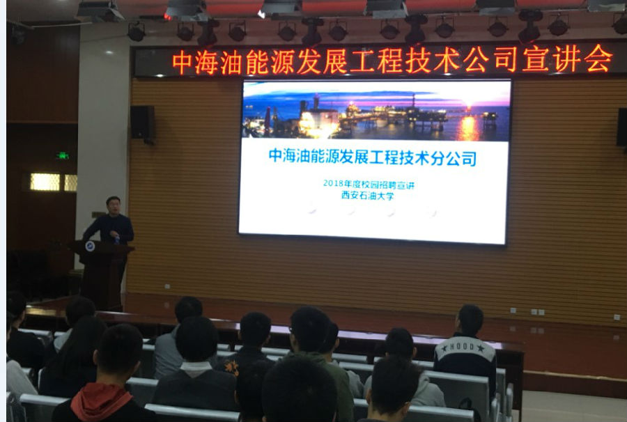 2018年10月16日上午,地球科學(xué)與工程學(xué)院在鄠邑校區(qū)就業(yè)指導(dǎo)中心多功能廳舉辦中海油能源發(fā)展工程技術(shù)分公司專場(chǎng)招聘會(huì),公司人事經(jīng)理劉作鵬一行五人出席招聘會(huì),我校100余名畢業(yè)生參加招聘會(huì)。