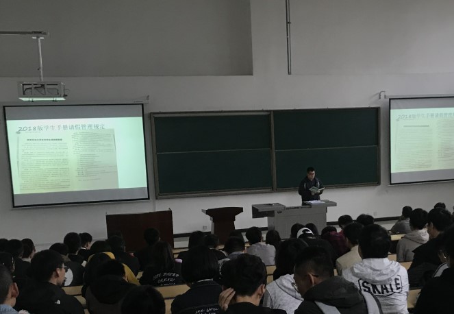 會上,邱老師首先對學生進行了安全意識教育,帶領學生們共同學習了《西安石油大學本科學生請銷假制度》,明確了日常穩(wěn)定安全管理相關制度要求的重要性,要求同學們嚴格遵守節(jié)假日去向統(tǒng)計、周末晚點名、上課考勤等制度。