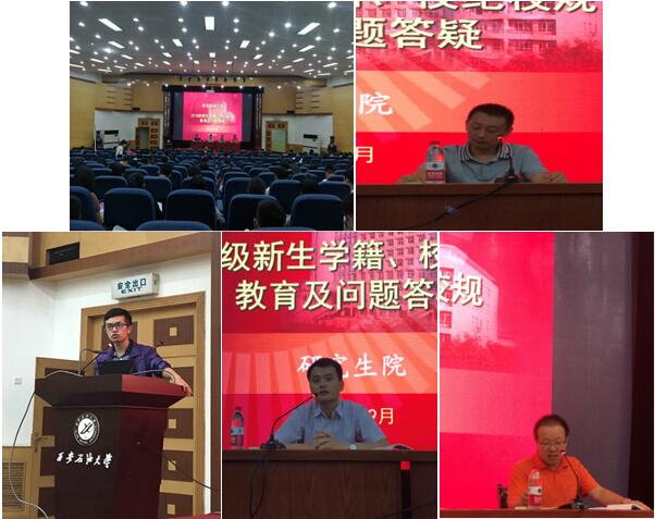 為進(jìn)一步落實(shí)2018級碩士研究生入學(xué)教育工作,提高研究生日常學(xué)習(xí)生活質(zhì)量,在學(xué)生工作部的指導(dǎo)下,9月12日至9月14日,在黨委學(xué)工部的指導(dǎo)下,研究生院聯(lián)合學(xué)生心理成長指導(dǎo)中心、保衛(wèi)處、計(jì)劃財(cái)務(wù)處、校醫(yī)院等,在雁塔校區(qū)會議中心學(xué)術(shù)報(bào)告廳先后開展了法制安全教育、消防安全教育、新生學(xué)籍校紀(jì)校規(guī)教育及問題答疑、衛(wèi)生防疫教育、心理健康教育等一系列入學(xué)教育專題報(bào)告。