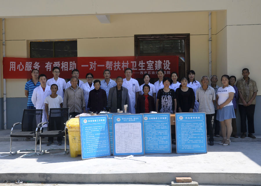 為深入推進脫貧攻堅工作,幫扶村衛(wèi)生室進一步做好標準化衛(wèi)生室建設(shè)和驗收工作,2018年8月29日,西安石油大學醫(yī)院一行11人組成專家團隊在院長崔廣志的帶領(lǐng)下赴藍田輞川鎮(zhèn)甘坪村以“用心服務(wù) 有愛相助 一對一幫扶村衛(wèi)生室建設(shè)”活動為主題進行健康扶貧工作。