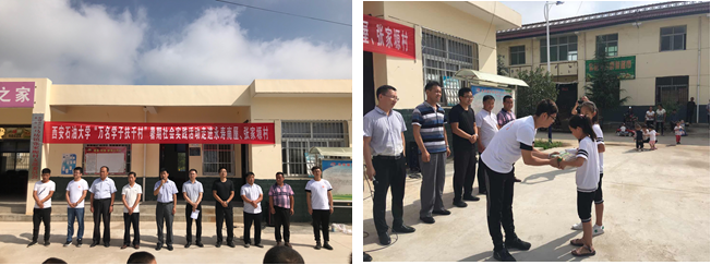 活動(dòng)當(dāng)天,在永壽縣縣委常委、統(tǒng)戰(zhàn)部部長(zhǎng)郭傳海同志、團(tuán)縣委書(shū)記張磊同志及相關(guān)縣委領(lǐng)導(dǎo)、張家塬小學(xué)校領(lǐng)導(dǎo)、我校團(tuán)委馬琦老師、駐永壽縣團(tuán)委掛職干部潘德潤(rùn)老師、校團(tuán)委、電子工程學(xué)院、理學(xué)院學(xué)生代表的共同參與下,于馬坊鎮(zhèn)張家塬村舉行了西安石油大學(xué)“萬(wàn)名學(xué)子扶千村”大學(xué)生暑期社會(huì)實(shí)踐脫貧攻堅(jiān)活動(dòng)啟動(dòng)儀式,并由黃景鵬老師向留守兒童捐贈(zèng)了圖書(shū)等學(xué)習(xí)用品。