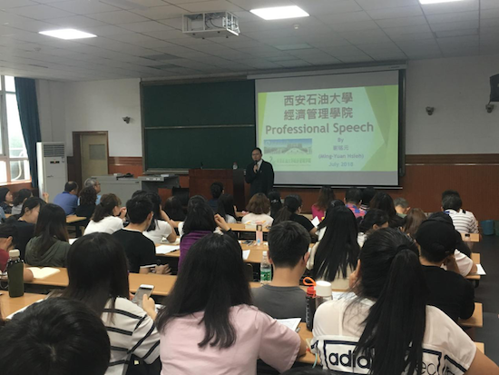 2018年7月4日下午3點(diǎn),應(yīng)西安石油大學(xué)國際交流與合作處和經(jīng)濟(jì)管理學(xué)院邀請,來自臺灣臺中教育大學(xué)的謝銘元教授在雁塔校區(qū)二號教學(xué)樓東階202教室為經(jīng)濟(jì)管理學(xué)院廣大師生作題為《區(qū)域經(jīng)濟(jì)整合對全球經(jīng)濟(jì)發(fā)展的影響》的講座。經(jīng)濟(jì)管理學(xué)院近100名師生參加講座。