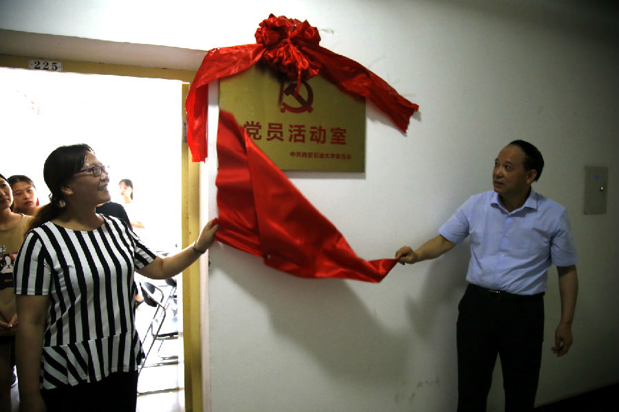 在黨委組織部的大力推動下,經(jīng)過半年多建設(shè),一個(gè)窗明幾凈,設(shè)備齊全,資料豐富的黨員活動室建成了。6月22日下午,人文學(xué)院鄠邑校區(qū)黨員活動室正式揭牌投入使用。校黨委書記賽云秀、校黨委副書記雷西合出席揭牌儀式。黨委組織部、學(xué)生工作部等部門負(fù)責(zé)人,人文學(xué)院黨委書記袁玎,副書記李善建及輔導(dǎo)員文愛國,付強(qiáng)和學(xué)生黨員代表參加了揭牌儀式。