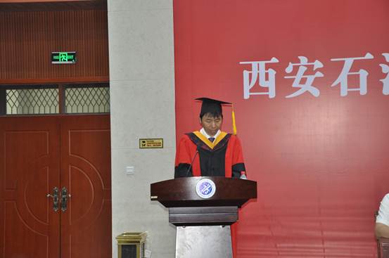 學位授予儀式在莊嚴的國歌聲中開幕。侯琦書記代表學院在儀式上發(fā)表了熱情洋溢的講話,他首先代表學院向圓滿完成學業(yè)并獲得學士學位的全體畢業(yè)生表示熱烈的祝賀!侯琦書記說,四年時光,學院見證了每一位同學的成長與收獲,同時,同學們也見證了學校獲批博士學位授予單位、鄠邑校區(qū)東大門的建成啟用、新操場的投入運行等學校發(fā)展時刻。新時代中國對同學們而言既是挑戰(zhàn),也是施展才華的好機會。他對畢業(yè)生提出了四點希望和囑托:一是繼續(xù)弘揚鐵人精神和石油精神,充分發(fā)揮自身優(yōu)勢,以青年人應有的責任和擔當讓青春綻放光彩。二是堅持對卓越的追求,以時不我待只爭朝夕的踏實精神實現(xiàn)人生目標。三是激活正能量擁有好心態(tài),面對困難挫折時擁有好心態(tài)是轉變角色、適應社會的關鍵。四是筑夢人生,精彩一生。要敢于有夢、善于筑夢、勤于追夢,實現(xiàn)自己的人生價值,為祖國、為社會添磚加瓦,為母校、為父母增光添彩。