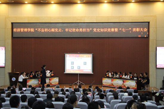 經(jīng)濟(jì)管理學(xué)院舉辦“不忘初心跟黨走,牢記使命勇?lián)?dāng)”黨史知識競賽暨 “七一”表彰大會