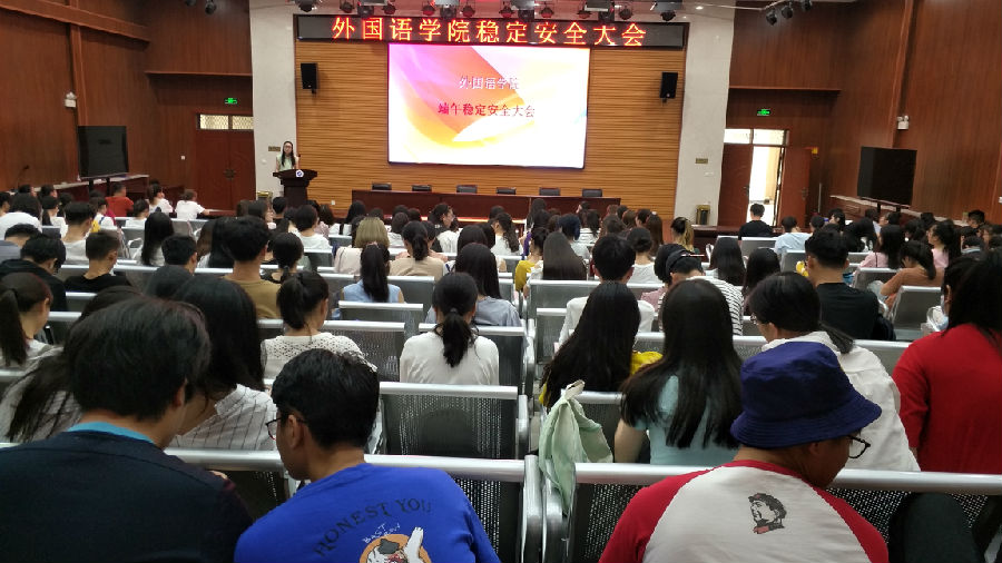 6月14日下午4:00,我院于三號院系樓就業(yè)指導中心舉行端午節(jié)前穩(wěn)定安全大會,本次大會主講人為外國語學院2016級輔導員李洋甜老師,我院16級、17級全體學生按時到場。