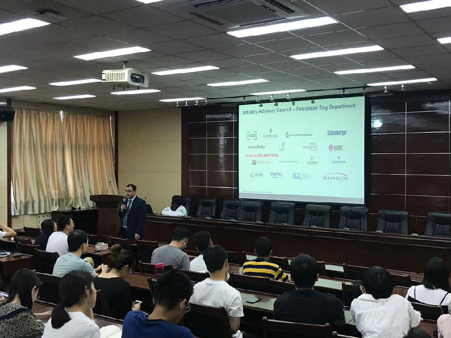 會(huì)后,Vamegh Rasouli博士在西階第五會(huì)議室為我校師生做了題為《Unconventional Shale Plays Exploration, Development and Production: Current State in the U.S. and Technology Transfer to China》(中文名稱是“頁巖油氣區(qū)的勘探、開發(fā)與生產(chǎn):美國現(xiàn)狀與向中國技術(shù)轉(zhuǎn)讓”)的學(xué)術(shù)報(bào)告。