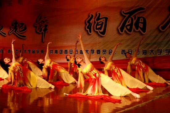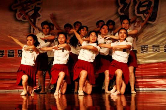 本場(chǎng)晚會(huì)由我系宋淼老師總策劃,全程指導(dǎo)學(xué)生排演節(jié)目并制定演出方案。教師與學(xué)生攜手演繹,李陽(yáng)、田立老師演唱歌曲《我愛你中國(guó)》為本場(chǎng)晚會(huì)拉開了序幕,校工會(huì)教師舞蹈隊(duì)的《C哩C哩、茉莉花》將現(xiàn)代及古典舞蹈相結(jié)合,展現(xiàn)了我校熱愛舞蹈的教工風(fēng)采;現(xiàn)代舞蹈、薩克斯重奏《雨中曲》、影視歌曲聯(lián)唱等曲目贏得了觀眾的陣陣掌聲;周偉老師指導(dǎo)的音樂系合唱團(tuán)演唱的大合唱《長(zhǎng)恨歌—仙樂風(fēng)飄處處聞》、《十送紅軍》大氣磅礴,;民樂合奏、女生小合唱、傣族舞和獨(dú)唱更是體現(xiàn)了我系學(xué)生專業(yè)水準(zhǔn);由我系舞蹈教師何云老師自編自導(dǎo)的舞蹈《京劇臉譜》,舞蹈動(dòng)作大氣到位、服裝道具美輪美奐、編舞專業(yè)化程度高,讓人耳目一新,震撼全場(chǎng);結(jié)尾舞《輝煌明天》將晚會(huì)推向了高潮,晚會(huì)在全場(chǎng)同學(xué)的掌聲中圓滿落下帷幕。