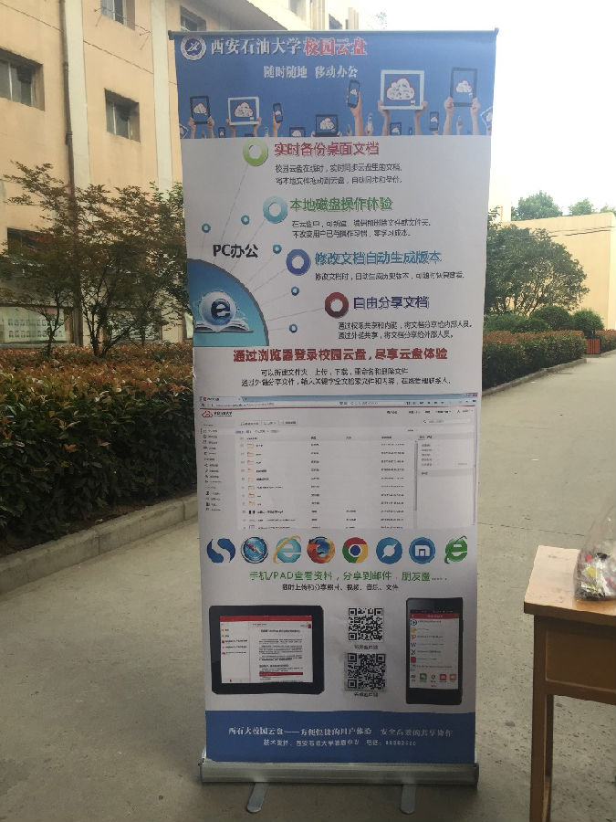 5月17日,為進一步提高西安石油大學校園云盤(簡稱:西石大云盤)的登錄使用率,信息中心分別在鄠邑校區(qū)和雁塔校區(qū)舉辦了西石大云盤宣傳推廣活動。西石大云盤是我校部署的私有云存儲系統(tǒng),具有個人網(wǎng)盤、課件共享、作業(yè)提交、團隊協(xié)作等多種便捷功能,為我校師生提供了一個安全高效的教學科研數(shù)據(jù)與學習資料共享的存儲服務。
