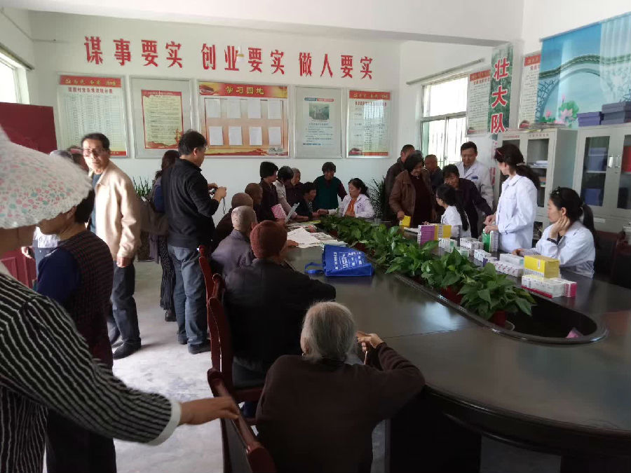 第二項活動內(nèi)容:由院長、副院長及其他醫(yī)務(wù)人員在村委會開展扶貧義診活動,活動現(xiàn)場,醫(yī)療專家團隊對前來尋醫(yī)問診的群眾把脈、測血壓、測血糖、開方、發(fā)放健康宣傳冊,耐心為村民解答各種醫(yī)療保健咨詢,并進行健康知識和疾病預防知識宣講。針對檢查中發(fā)現(xiàn)的病情提出治療方案,從健康飲食和科學用藥等方面給予了認真指導。并發(fā)放部分藥品,前來咨詢診醫(yī)的村民30余人。