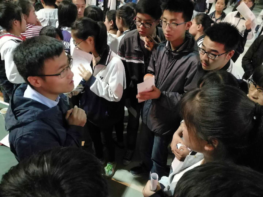 齊基和張振軍兩位老師結(jié)合生涯規(guī)劃課程知識體系與自身豐富的學(xué)生工作經(jīng)驗(yàn),精心準(zhǔn)備,為高中生做了多場精彩紛呈的中學(xué)生生涯規(guī)劃與心理勵志報(bào)告,活動現(xiàn)場互動熱烈,報(bào)告會受到了中學(xué)生的熱烈追捧。同學(xué)們紛紛表示受益匪淺,對個人未來的生涯規(guī)劃和職業(yè)導(dǎo)向有了更清晰的認(rèn)識和目標(biāo)。在走訪中學(xué)的咨詢服務(wù)活動中,兩位老師為各地中學(xué)分發(fā)我校2018年招生宣傳材料,為同學(xué)們答疑解惑,解讀招生政策、專業(yè)特色、就業(yè)前景等關(guān)注度較高的問題,我校富有特色、內(nèi)容豐富的宣傳材料受到了中學(xué)師生的廣泛好評。