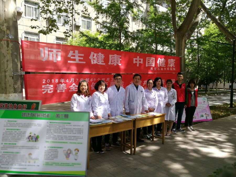2018年4月7日是第69個(gè)世界衛(wèi)生日,為全面貫徹落實(shí)《“健康陜西2030”規(guī)劃綱要》要求和提高我校師生健康意識(shí),校醫(yī)院4月8日在雁塔校區(qū)開展以“全民健康覆蓋:每一個(gè)人,每一個(gè)地方”為主題的健康教育宣傳活動(dòng)。