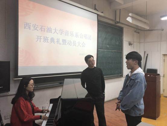 為加強音樂系學生各項基本技能,培養(yǎng)高質(zhì)量的“一專多能”型的群眾藝術(shù)工作者,經(jīng)過2個多月的籌備,成立音樂系合唱團。3月26日晚,在雁塔校區(qū)二號教學樓1506音樂教室舉辦合唱團開班暨動員大會。特聘,西安電子科技大學公共藝術(shù)教育中心主任、陜西省合唱學會副會長周偉教授為合唱團指揮,音樂系主任程輝副教授、系黨總支副書記張偉出席本次大會。指導老師宋淼、鋼琴伴奏老師呂澄、學工辦全體老師及40名合唱團成員參加本次大會。本次大會由張偉副書記主持。