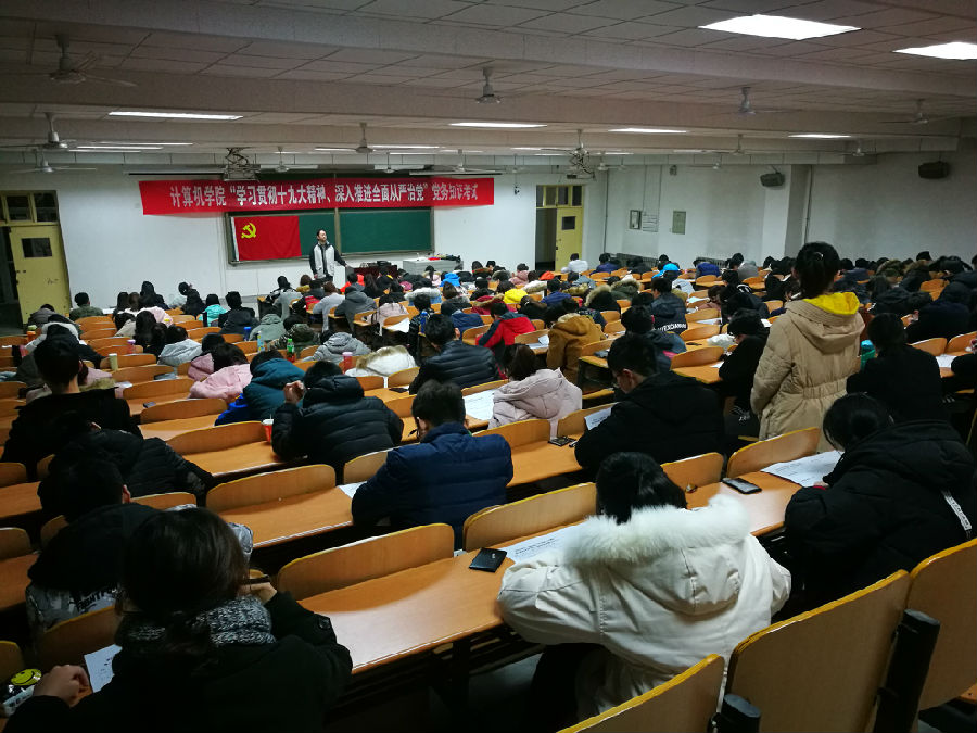 1月2日晚,計算機學院在鄠邑校區(qū)教學A區(qū)139教室組織開展“學習貫徹黨的十九大精神、深入推進全面從嚴治黨”專題考試。學院全體輔導員和158名學生黨員參加。